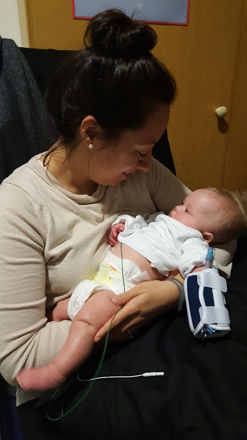 Izzie had the IV put in her left arm which you can see in the picture of Crystal holding her below.
